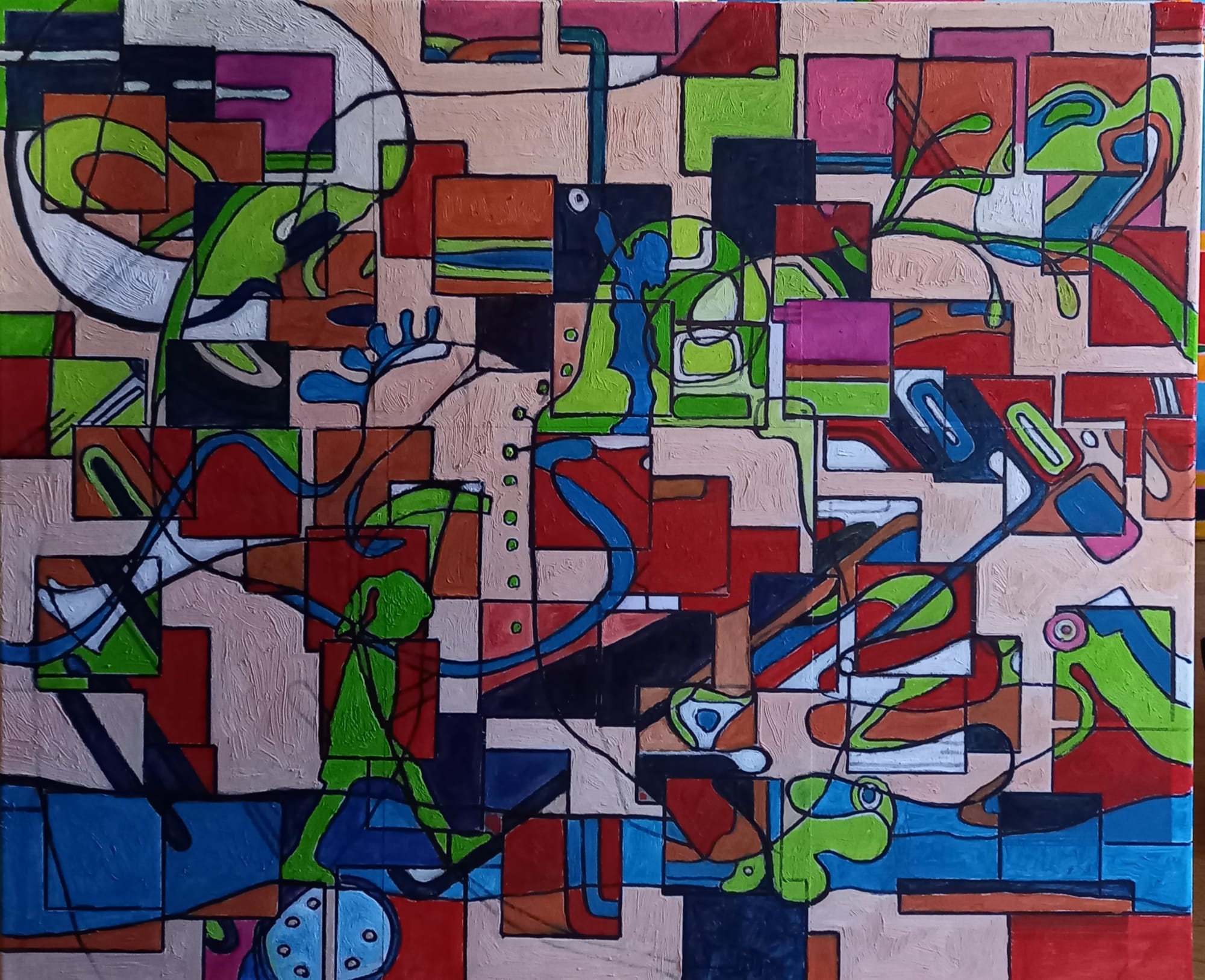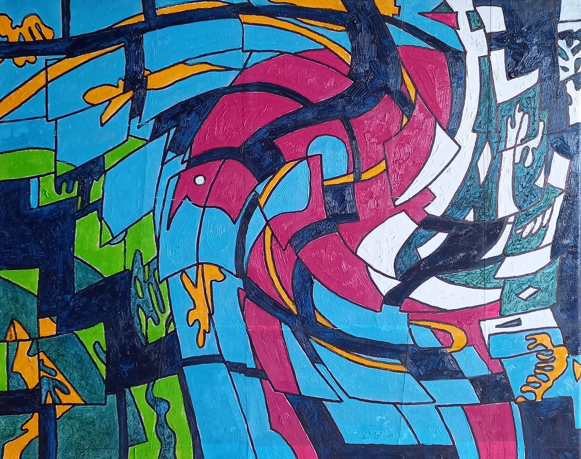 Resorting to the realism of the figures and the gestural abstraction, the paradox, the contrariety, the criticism or irony, what I do is unfold the reality, individual and collective, which is common to us, reconfiguring it in the plan of the canvas.